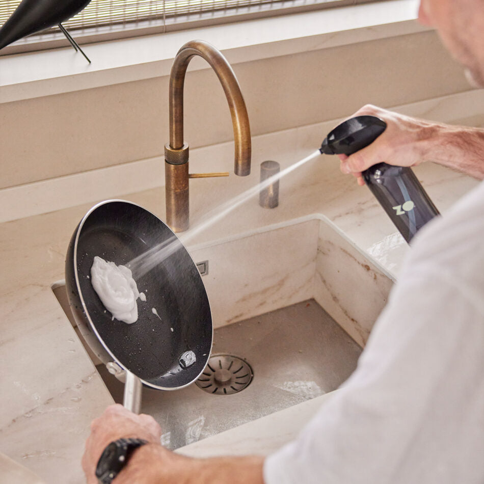 Met ZO afwas schoon haal je vuil en vet zo van je vaat: makkelijker dan een knijpfles én zuiniger met water en energie, omdat je vooral koud water gebruikt. Even afspoelen, foamen, naspoelen en afdrogen. Heb je ZO afwas schoon nog niet? Begin met het startpakket. Bestel €˜t hier.